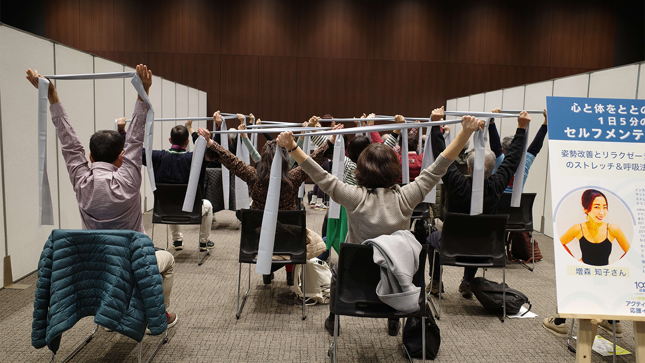 「心と体をととのえるセルフメンテナンス」では、プロのインストラクターによる指導のもと、椅子に座ったまま無理なくできるストレッチや呼吸法を体験。「体が楽になった」「先生からきちんと学ぶのと、自己流でやるのとではやはり効果が違う」などのコメントが参加者の方から聞かれました。年齢を重ねても無理なく取り組める内容に、多くの方が関心を寄せていました。