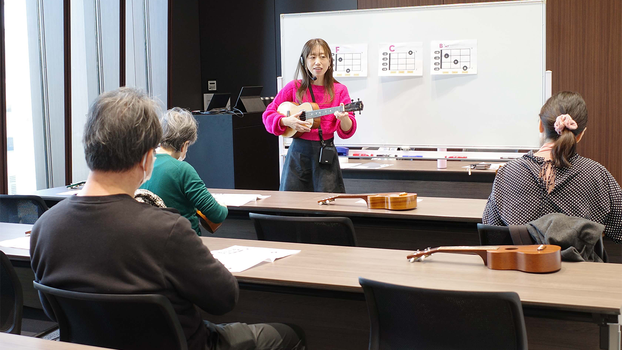 「ウクレレ体験」では、プロのウクレレ奏者の丁寧な指導により、短時間で簡単なメロディを奏でられるように。参加者からも「楽しかった」という声が多く聞かれ、会場は終始明るい雰囲気に包まれていました。3つのワークショップはいずれも、日常生活に取り入れやすい実践的な内容で、多くの方に気軽に楽しんでいただくことができました。